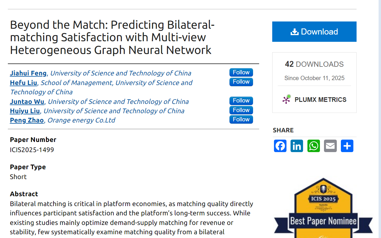 硕士生徐翼豪获ICIS 2025最佳论文提名
